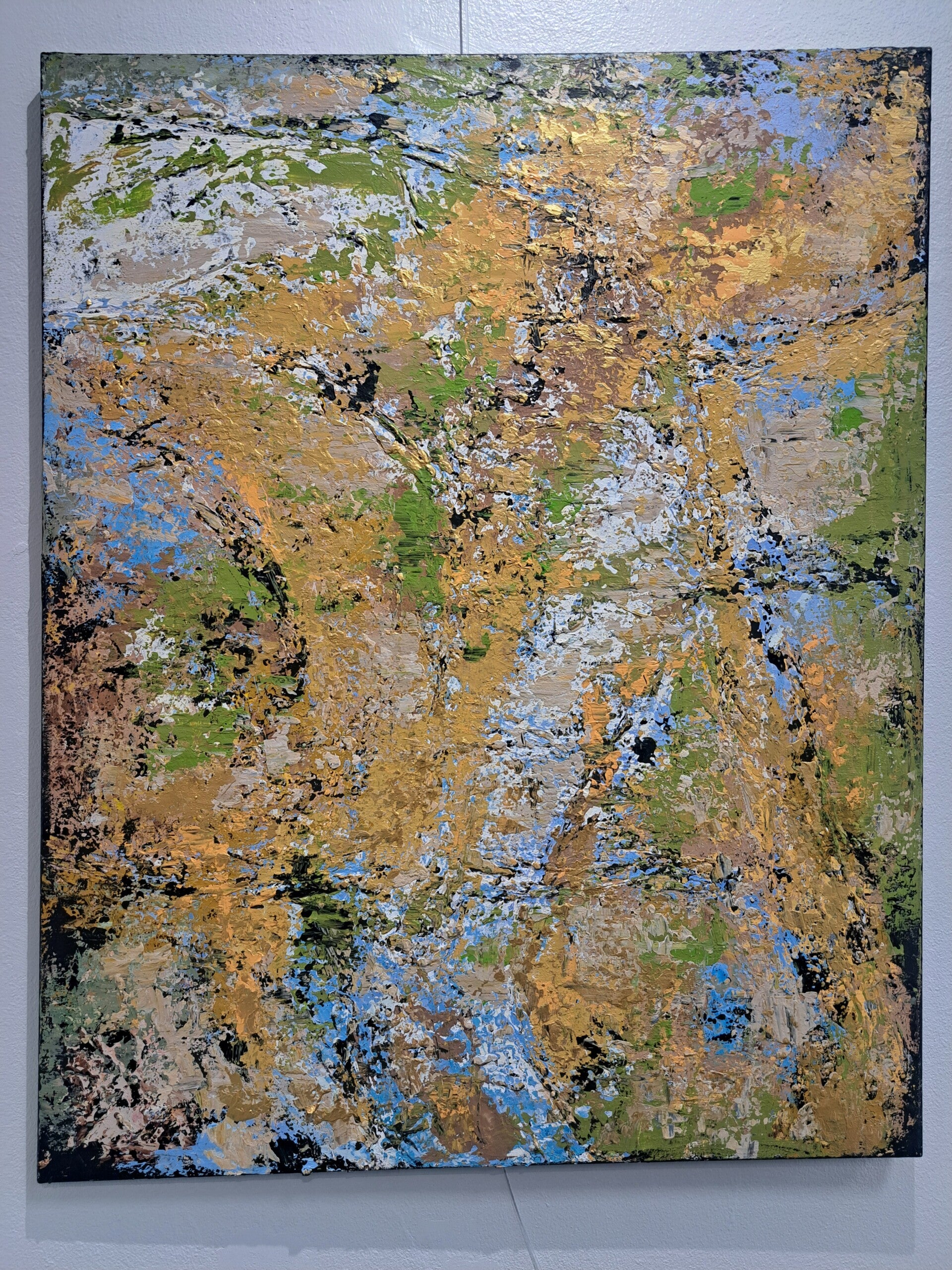 Jäät sulaa-on abstakti maalaus, jossa karhea pinta paljastaa maan eri sävyjä ja muotoja jään sulaessa